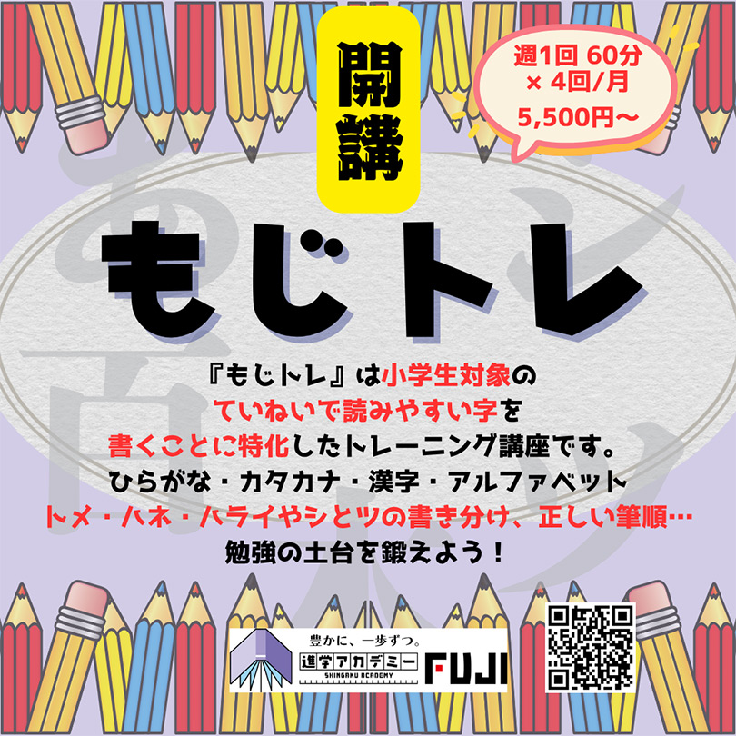 進学アカデミーFUJIでは、小学生を対象として、「字を丁寧に書くこと」に特化した講座を新たに開設しました。